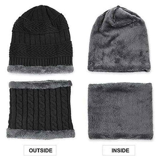 Winter Knit Woolen Hat & Neck Scarf Set with Fleece Lining (Unisex)