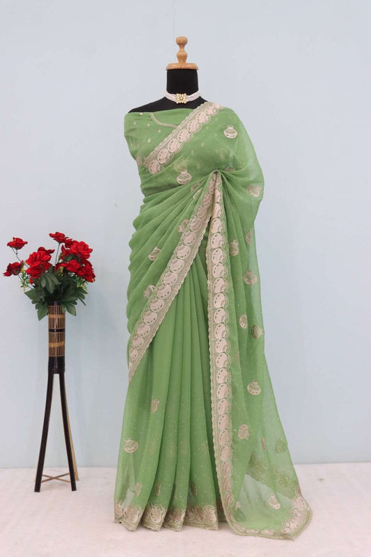 Georgette Heavy Embroidery With Multi Thread & Sequence Work