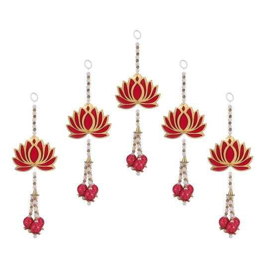 = Cashback Units 323/-Lotus Hangings for Decoration - Red Color, 9 Inch - Set of 5 Strings, Floral Wall Hanging.