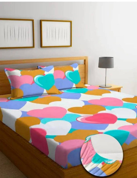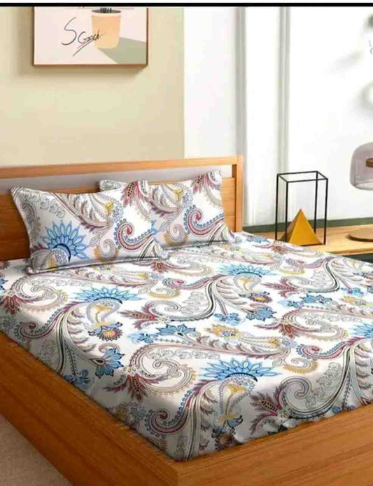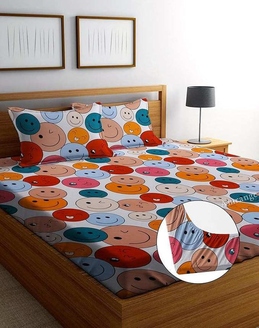 = Cashback Units 105/-Elastic Fitted King Size Bedsheet – Glace Cotton with Pillow Covers