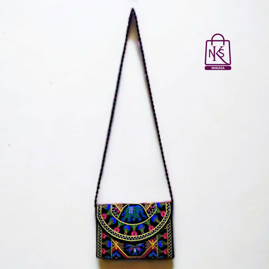 = Cashback Units 89/-NAKASA Women's Ahmedabadi Handmade Elephant and Flower Embroidery Small Black Clutch Bag