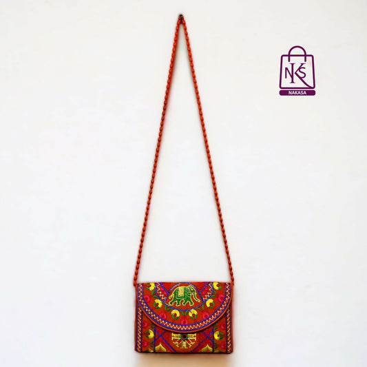 = Cashback Units 89/-NAKASA Women's Ahmedabadi Handmade Elephant and Flower Embroidery Small Orange Clutch Bag