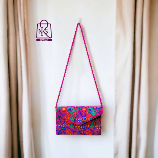 = Cashback Units 119/-NAKASA Women's Rajasthani Handmade Embroidery Regular Pink Velvet Clutch Bag