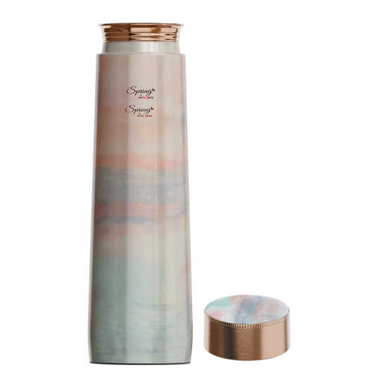 Pure Copper Elegant 1000 ml Premium Coated Water Bottles (White Abstract, 1000 Ml)