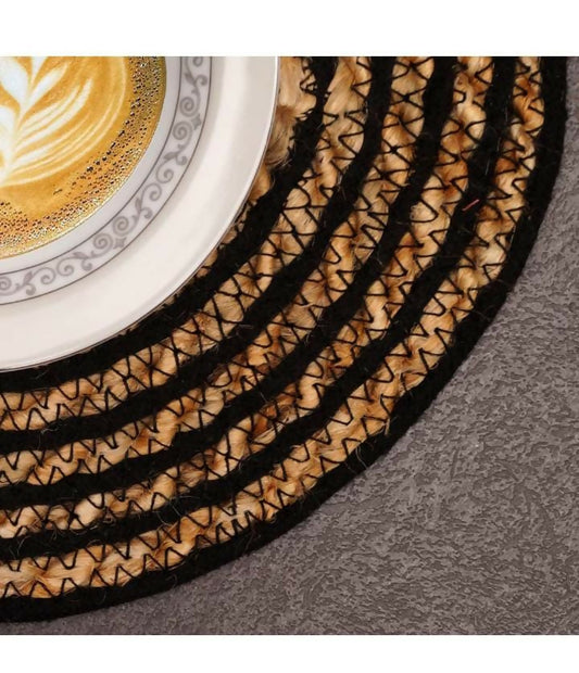 Jute And Cotton Black Table mat Set of 6 30x30cms