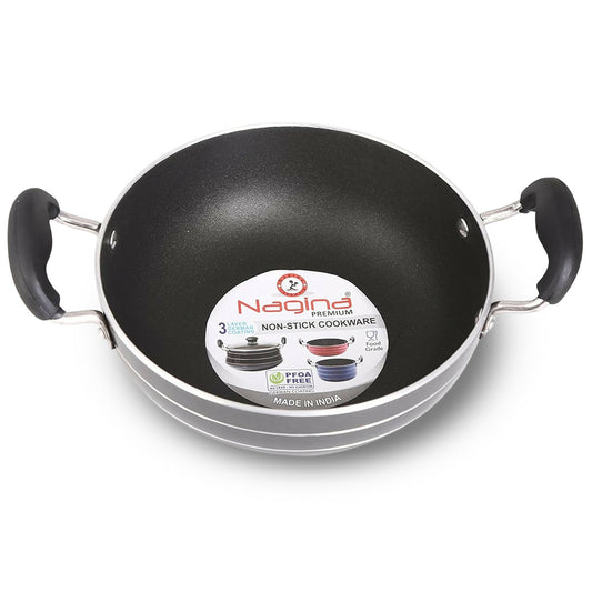 NAGINA Non Stick Deep Kadhai with Steel Lid – kadhai for Cooking