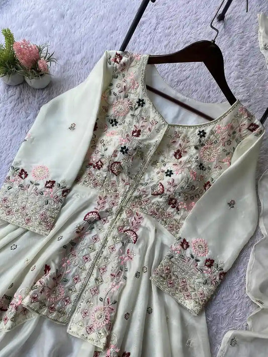= Cashback Units 521/-Designer Rangoli Silk Sequence Embroidered Top Plazzo Set with Dupatta