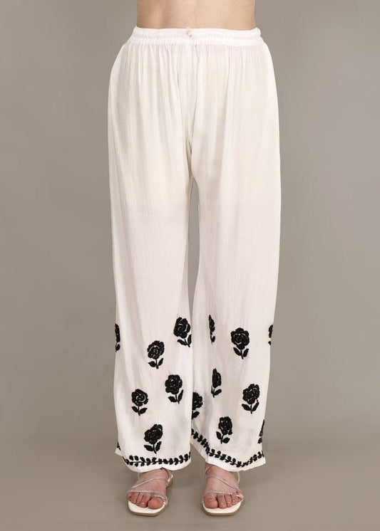 = Cashback Units 519/-Pure modal white & Black Hand Embroildered Lucknow Chikankari kurta Palazzo set