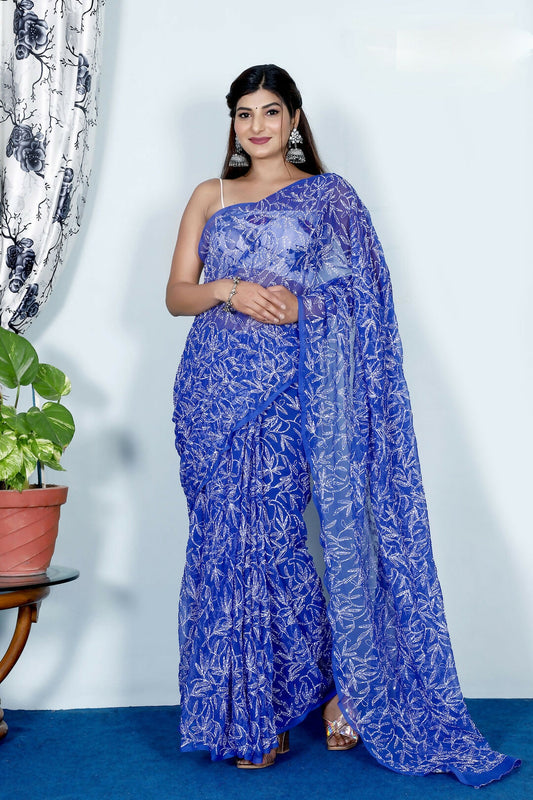 • Women's Net Embroidered Semi-Stitched Lehenga Choli