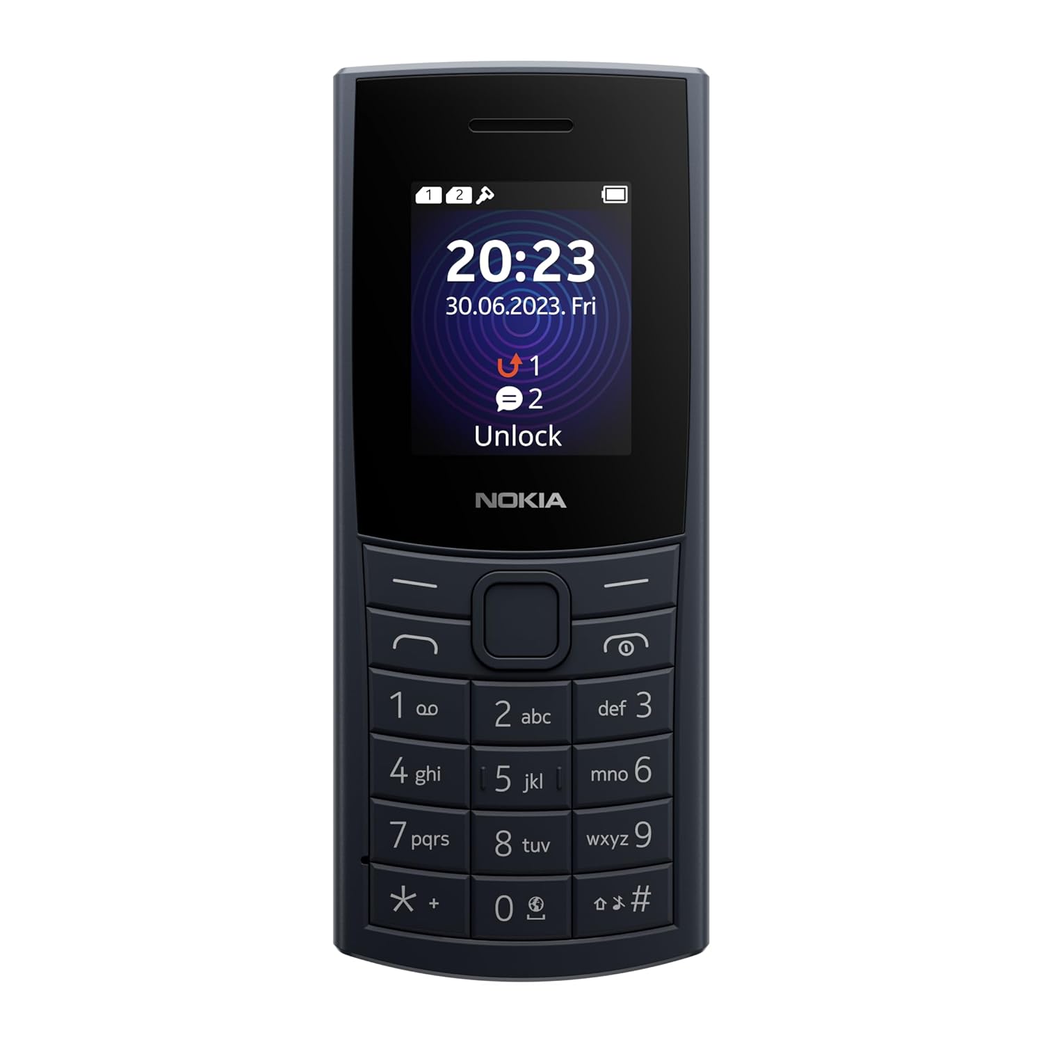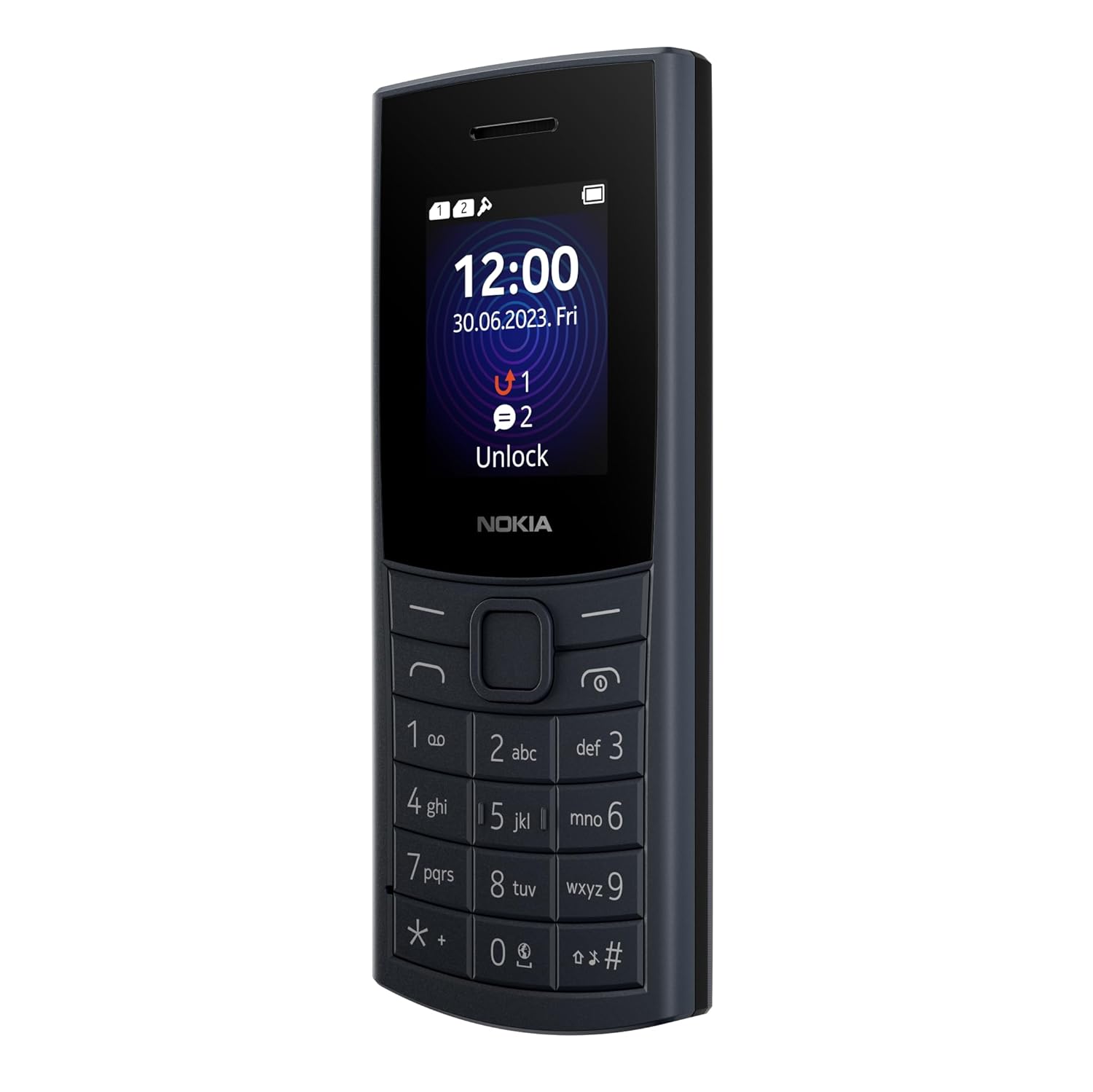 Nokia 110 4G with 4G, camera, Bluetooth, FM radio, MP3 player, MicroSD, long-lasting battery, and pre-loaded games