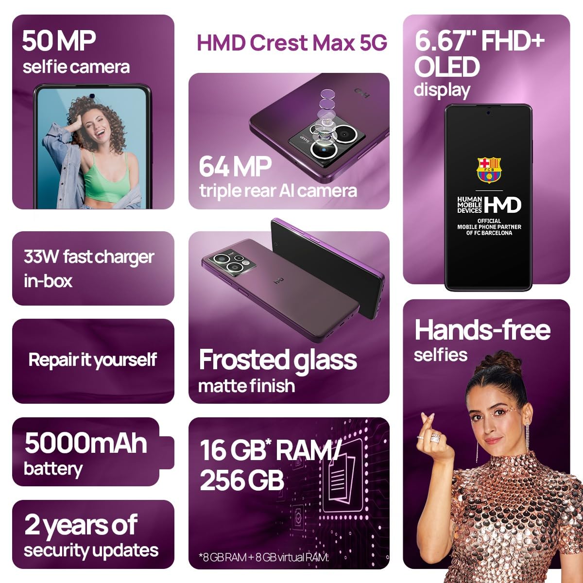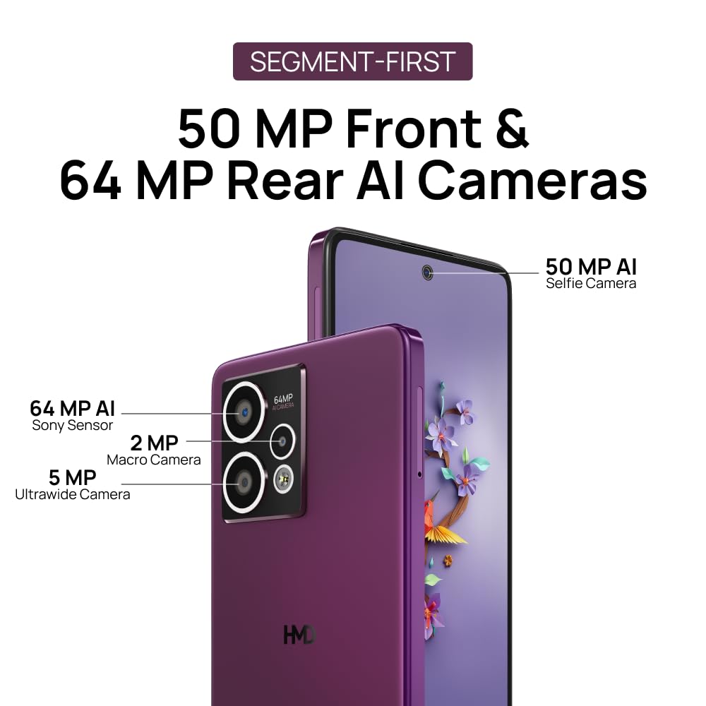 HMD Crest Max 5G | Segment 1st 50 MP Front Cam | Triple Rear AI Cam with 64 MP Primary Sony Sensor | FHD+ OLED Display | 8 GB RAM & 256 GB Storage | Android 14 | 33W Fast Charger in Box