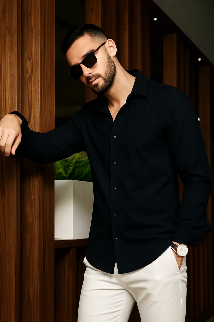 ๐ Buttons: Matching black buttons (front placket & cuffs)